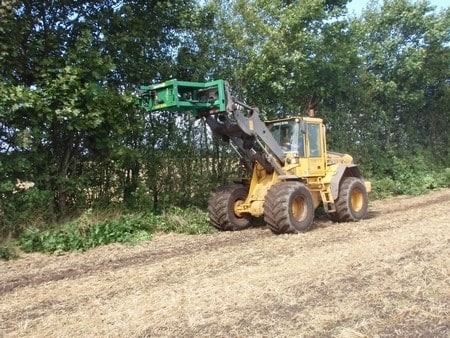 Hækklipning tilbydes med en Spearhead. Den er monteret med et 2.5 m. høj klippehoved og er monteret på en Volvo L 90 G ged